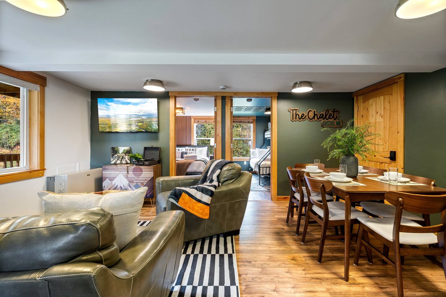 Welcome to Bear Cub at The Chalet in Eustis, ME. A cozy lower-level retreat ideal for couples, small groups, or weekday adventurers. This thoughtfully designed space offers comfort, convenience, and direct access to Maine’s best outdoor experiences. What You’ll Love: ~Direct snowmobile & ATV trail access ~Just 20 min to Sugarloaf, 40 min to Saddleback ~Minutes to the Appalachian Trail, Flagstaff Lake, and Dead River canoe/kayak access ~Open living & kitchen area designed for relaxing after a day outdoors ~Two bedrooms with comfortable mattresses and soft linens ~Private deck for fresh mountain air and morning coffee ~Ample parking for vehicles and trailers Adventure at Your Doorstep: ~Hiking, biking, paddling, and wildlife viewing nearby ~Quieter midweek access to trails and slopes ~Local favorites close by: Trailsend Steakhouse, Looney Moose Café, Pines Market, Flagstaff General Store Whether you’re planning a romantic getaway, friends’ adventure, or peaceful weekday escape, Bear Cub offers a warm, inviting stay in the heart of Eustis.