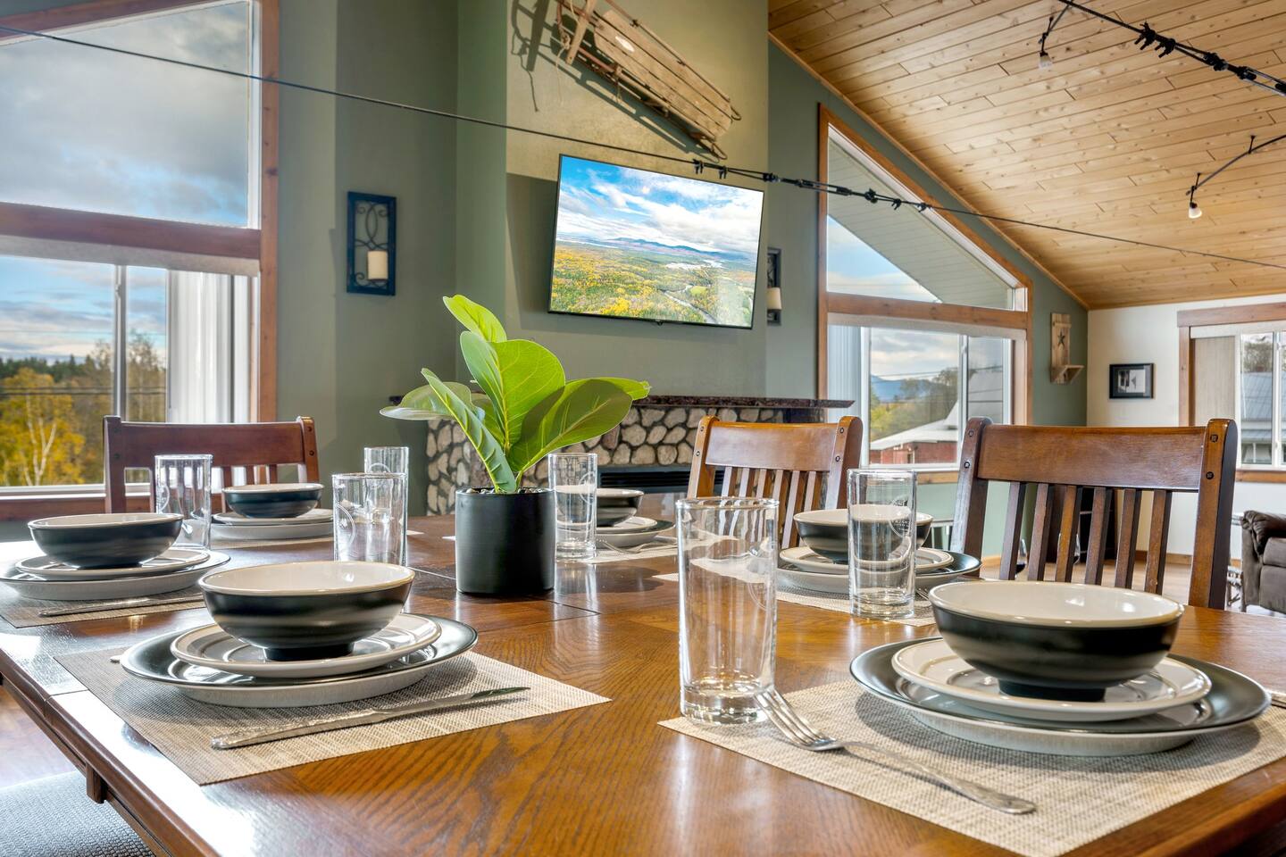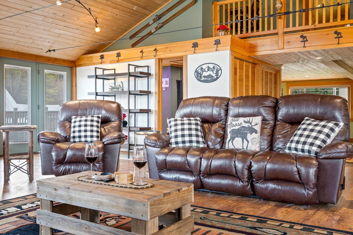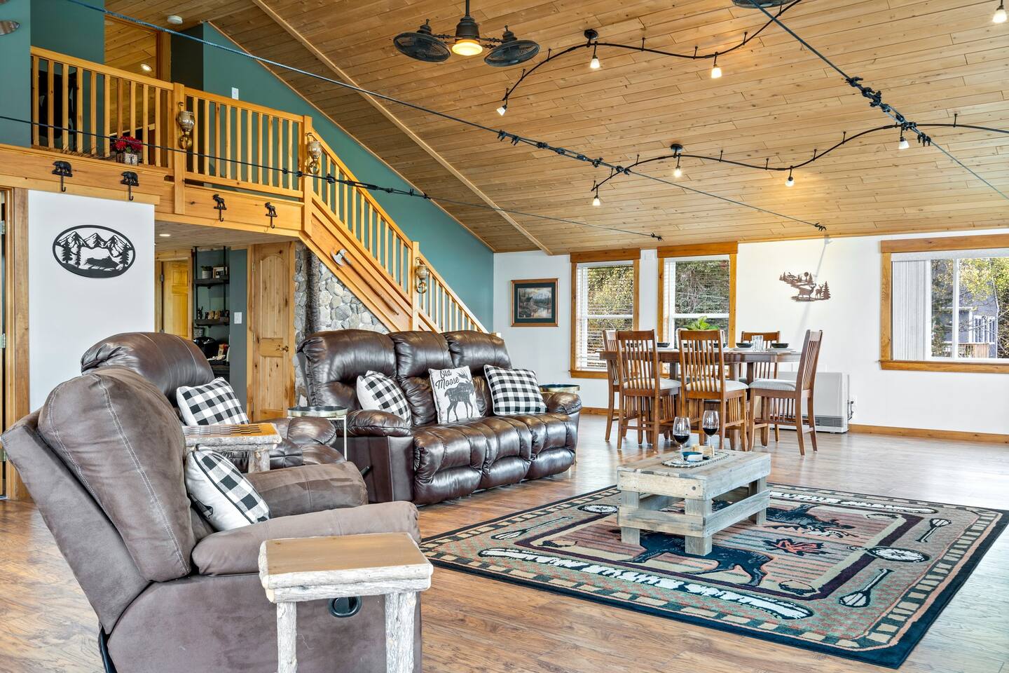 Welcome to Bull Moose! A 3 bedroom/2bath unit that is comfortable, yet stylish. A great place to gather with friends and family to relax and unwind. Sink into plush sofas in the tastefully decorated living space, perfect for lounging with loved ones or enjoying a movie night in. Our open-concept layout seamlessly blends the living and dining areas, creating a space that's inviting and versatile. Whip up delicious meals in the fully-equipped kitchen, then head out to the back deck to hang out while watching the deer come feed on our apple trees. When it's time to recharge, retreat to our well-appointed bedrooms where soft linens and comfortable mattresses promise a restful night's sleep. Speaking of adventures, our home puts you right in the heart of Eustis! Whether you're craving outdoor thrills like hiking and fishing, or prefer to soak up the local charm with leisurely strolls and relaxation, you're perfectly positioned to experience it all. Whether you're seeking adrenaline-pumping activities or serene moments of reflection, our space is your ticket to an unforgettable Eustis experience. Book your stay now and let the fun begin! Welcome to Bull Moose @ The Chalet at Eustis — Your Four-Season Mountain Retreat!** Nestled in the heart of Eustis, Maine, our spacious Chalet is the perfect getaway for outdoor enthusiasts. Surrounded by mountains, lakes, and trails, this property offers comfort, convenience, and direct access to some of Maine’s best outdoor adventures. 🦌 **Bull Moose – Upper Rear Unit (3BR / 2BA)** A spacious retreat with room for everyone. * 3 bedrooms with queen beds + Murphy bed in living room * Cozy living area with gas stove * Fully equipped kitchen with modern appliances * Master loft * Bathroom with Steam shower * Second full bathroom with shower/tub combo * Outdoor deck with seating — perfect for morning coffee or evening stargazing ✨ Amenities * High-speed Wi-Fi & flat-screen TVs * Heating & air conditioning * Washer & dryer * On-site parking for cars & trailers * Dog-friendly (with prior approval) --- 📍 Perfect Location Bull Moose is your launchpad for year-round adventure: * **Hiking & Lakes:** Explore the Appalachian Trail, Bigelow Mountain Range, or kayak, fish, and boat on Flagstaff Lake. * **Winter Sports:** Just 18 minutes to Sugarloaf and 40 minutes to Saddleback for world-class skiing, snowboarding, and snowshoeing. * **Trails:** Direct access to snowmobile and ATV trail systems from the property. * **Wildlife:** Spot moose, deer, and countless bird species right outside your door. * **Local Charm:** Discover nearby favorites like **Looney Moose Café** for hearty breakfasts, **Pines Market** for supplies, and **Flagstaff General Store** for local eats and essentials — plus other shops, cafés, and restaurants in town. --- **Whether you’re seeking adventure or relaxation, Bull Moose @ The Chalet at Eustis is the perfect place to gather, explore, and make lasting memories.**