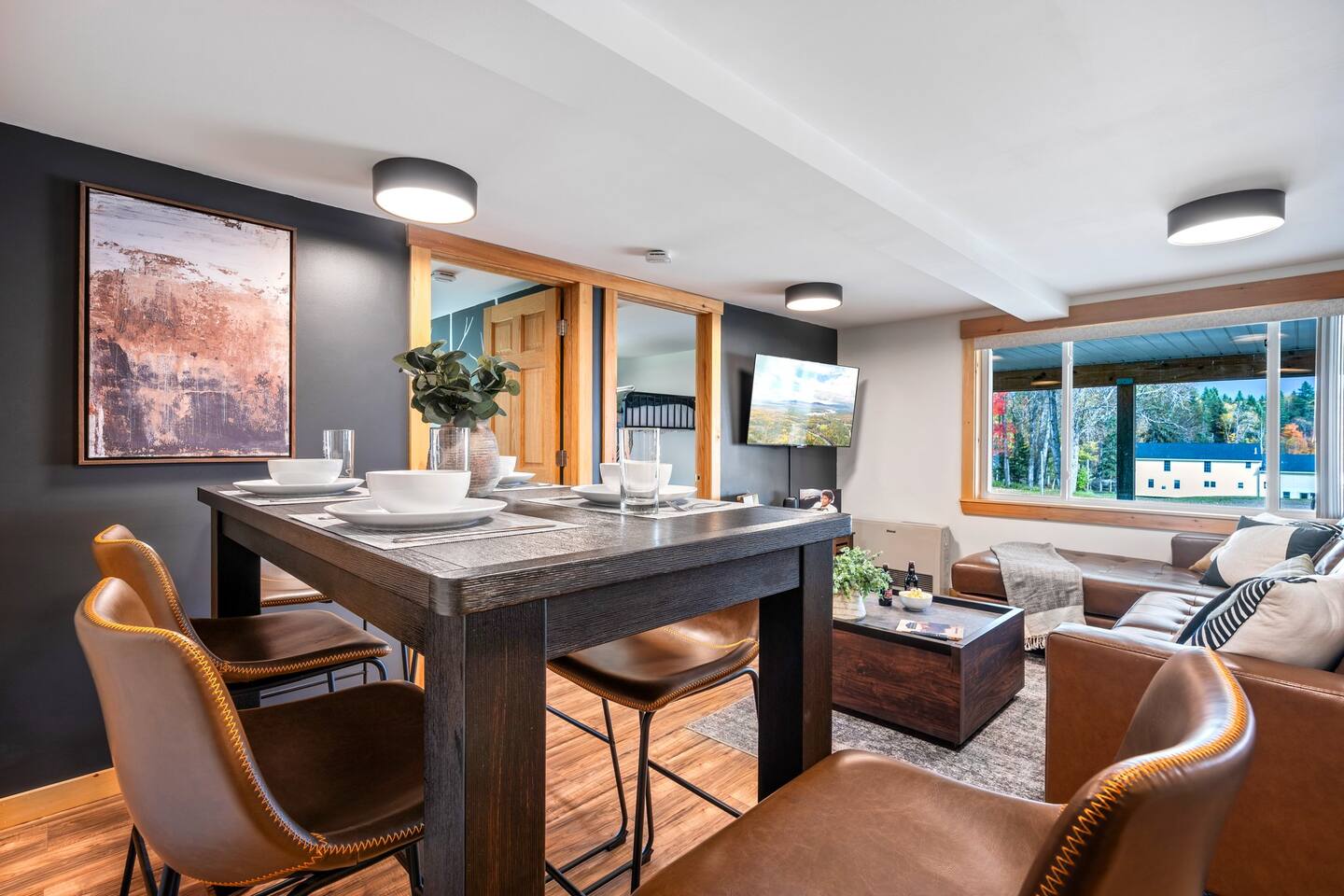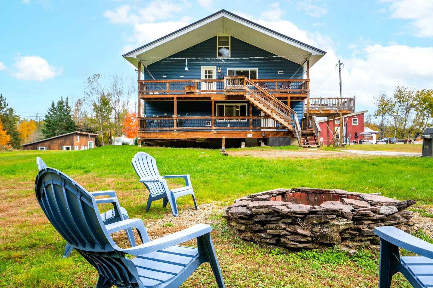Spacious mountain retreat with three separate units, perfect for groups or multiple families. Just 20 min to Sugarloaf, with direct snowmobile & ATV trail access. Enjoy lakes, hiking, and abundant wildlife, plus fully equipped kitchens, decks, and shared fire pit. Ideal for weekday or weekend stays, adventure, or quiet mountain escapes. Perfect for large groups seeking comfort and convenience in North Western Maine.