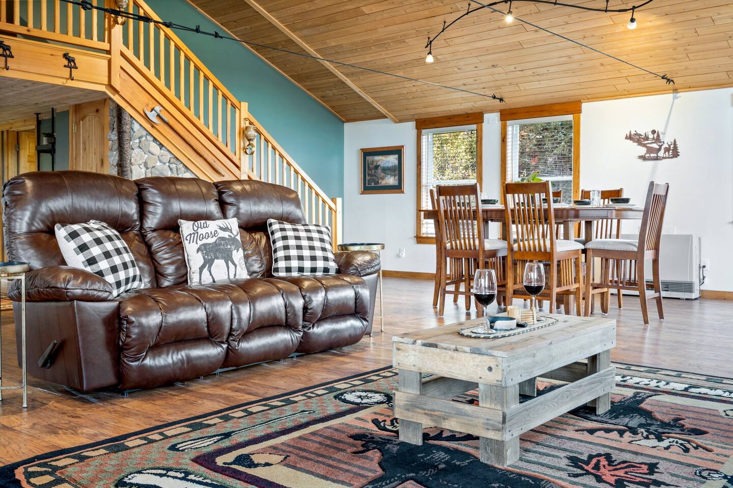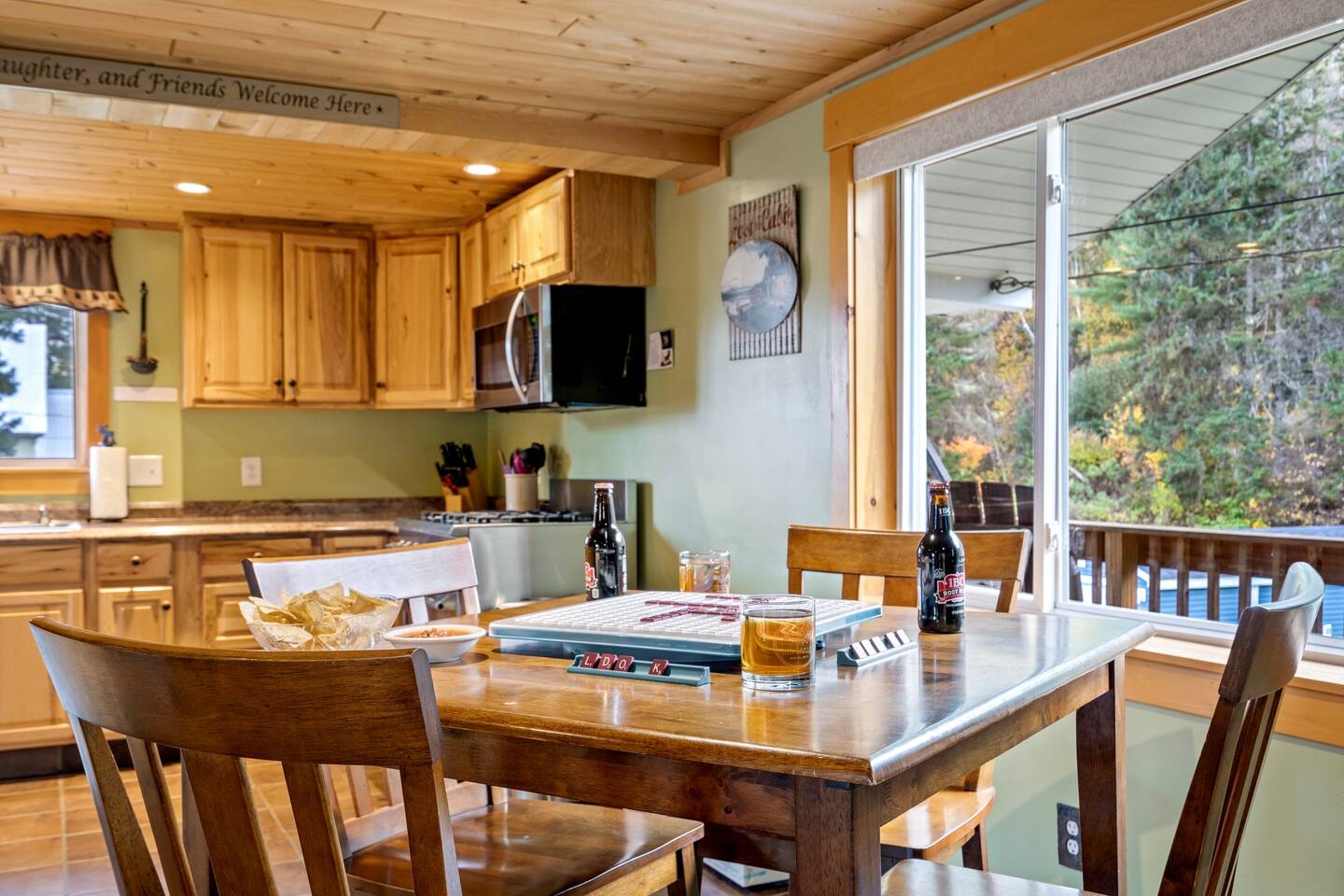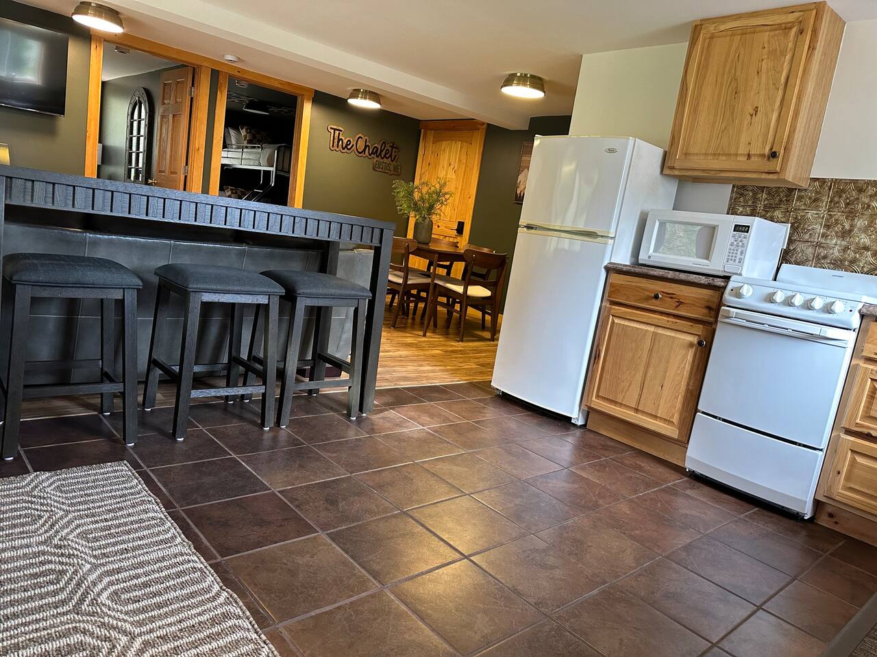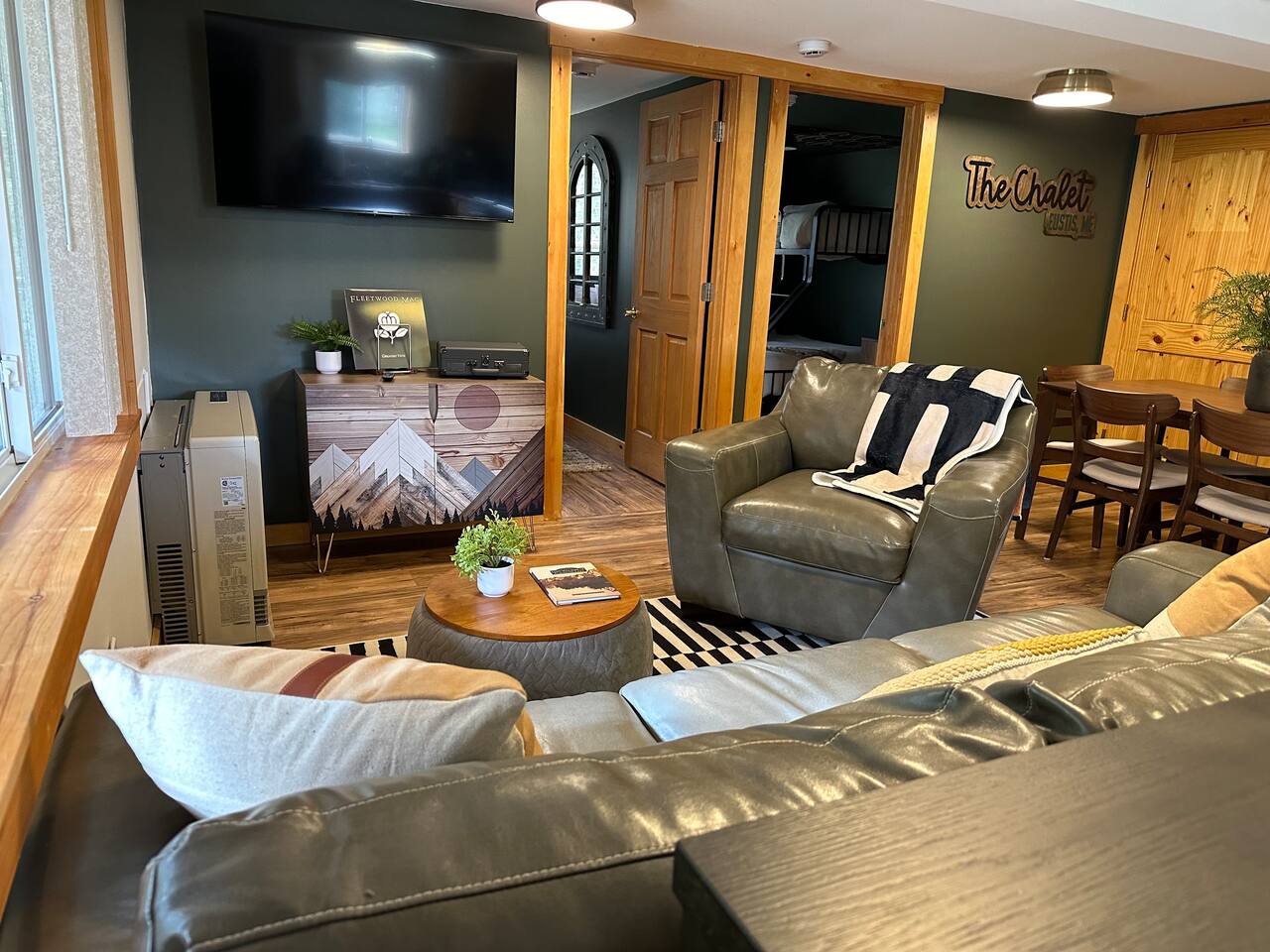 Welcome to our delightful chalet nestled in the heart of Eustis, Maine! This charming retreat is perfect for families, groups, and outdoor enthusiasts looking to explore the stunning natural beauty and recreational opportunities that the area has to offer. The chalet consists of three separate units, making it ideal for larger groups or multiple families traveling together. Bull Moose - Spacious 3-Bedroom, 2-Bath, Located in the Upper- Back Bedrooms: 3 Bathrooms: 2 Features: ~Cozy living area with a gas-burning stove ~Fully equipped kitchen with modern appliances ~Master loft with a queen sized bed ~Two additional bedrooms with queen-sized beds ~Steam shower ~Second bathroom with shower/tub combo Outdoor deck with seating Bucks Den: Cozy 2-Bedroom, 1-Bath, Located in the Lower-Front Bedrooms: 2 Bathrooms: 1 Features: ~Comfortable living space with an open floor plan ~Fully equipped kitchen with dining area ~Master bedroom with a queen-sized bed ~Second bedroom with with a queen/twin XL bunk ~Bathroom with a shower/tub Combo ~Deck with outdoor seating Bear Cub: Cozy 2-Bedroom, 1-Bath, Located in the Lower-Back Bedrooms: 2 Bathrooms: 1 Features: ~Comfortable living space with an open floor plan ~Fully equipped kitchen with dining area ~Master bedroom with a queen-sized bed ~Second bedroom with with a queen/twin XL bunk ~Bathroom with a shower/tub combo ~Deck with outdoor seating Amenities: High-speed Wi-Fi Flat-screen TVs Washer and dryer Heating and air conditioning On-site parking Pet-friendly (with prior approval) Location: Our chalet is perfectly situated to offer the best of Eustis and the surrounding areas: Outdoor Activities: Explore the nearby Appalachian Trail and Bigelow Mountain Range for hiking, or head to Flagstaff Lake for kayaking, fishing, and boating. Winter Sports: Just a short drive (18 min) to Sugarloaf Mountain Resort, where you can enjoy world-class skiing, snowboarding, and snowshoeing. Snowmobiling & ATV: Access extensive trail systems right from the property. Wildlife & Scenery: Enjoy wildlife watching and photography opportunities with frequent sightings of moose, deer, and various bird species. Local Attractions: Discover charming local shops, restaurants, and cafes in the nearby town center.